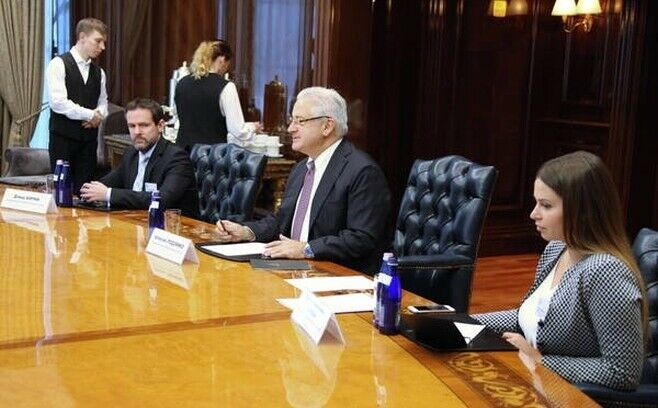 Татарстан Президенты Рөстәм Миңнеханов Мәскәүдә Американың Россиядәге Сәүдә палатасы президенты Алексеей Родзянко белән очрашты.