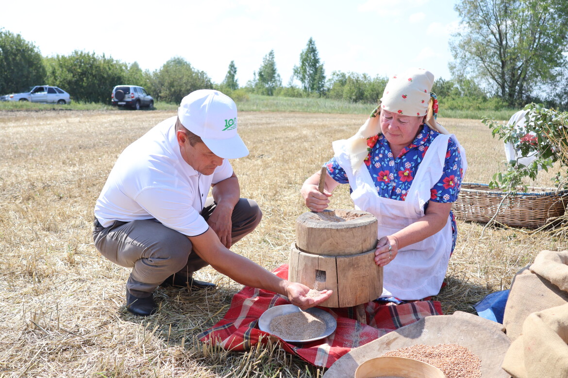 «Актаныш» агрофирмасы басуларында тарихи мизгелләрне кабат хәтердә яңарттык. Кул белән урак урган апа-җиңгиләр, каерылып чалгы белән чабылган икмәк көшелләре, бөртекләрне чабагач белән сугу, аннан ярма итеп яру күренешләрен Актанышбаш авыл җирлеге мәдәният хезмәткәрләре спектакль рәвешендә күрсәтте», диелгән хәбәрдә.