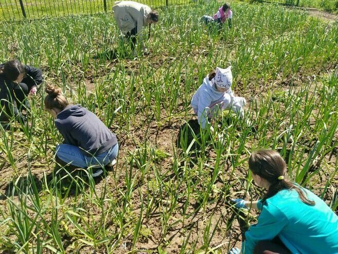 Сарымсакны йортлары янәшәсендә 7 сутый бакчага да утыртканнар. Эшмәкәрнең төп булышчылары – гаиләсе. Җәйге каникул чорында мәктәп укучыларын эшле итәргә дә алынганнар. 14 укучы чәчәк, сарымсак, салат басуында бердәм, дус булып чүп утый, үсенте араларын йомшарта.