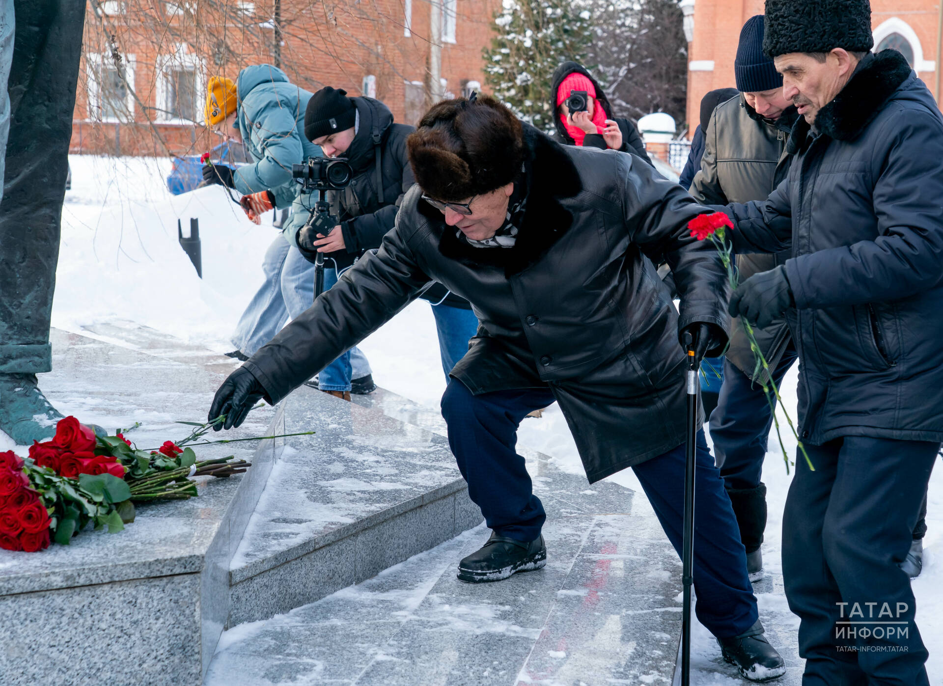Тантана ахырында чарага җыелучылар бөек шагыйрьнең һәйкәленә чәчәкләр куйды.