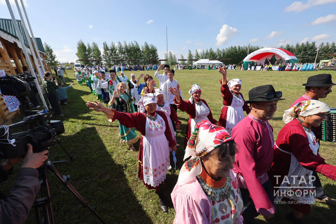 Төп мәйданда «Чулпы», «Нур» ансамбльләре Семык бәйрәме күренешен күрсәттеләр.