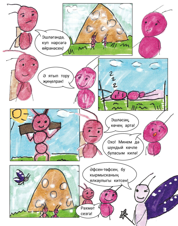 «Балалар иҗаты — һәрвакыт журналыбызның „йөзек кашы“, — ди Зилә Хөснетдинова. — Әле күптән түгел генә „Мин комикс ясыйм“ дигән бәйге игълан иткән идек. Беренче иҗат җиешләре килә дә башлады. Узган ел Шәвәли сәяхәте белән бәйле комикс балаларга ошаган иде. Бу эшкә укучыларны да җәлеп итәргә булдык. Декабрь аена кадәр һәр теләгән бала үзе комикс ясап редакциягә җибәрә ала. Ә иң уңышлы комикс авторы график планшет белән бүләкләнәчәк».