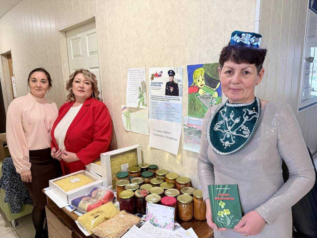 Чарадан соң Чакмагыш районының үзәк «Шәйморатов штабы»на махсус хәрби операциядәге якташларга җибәрү өчен ярдәм дә тапшырылды. Урындагы волонтерлар штабына өй токмачы, консервалар, балалар язган хатлар, рәсемнәр һәм язучының китаплары китерелгән.