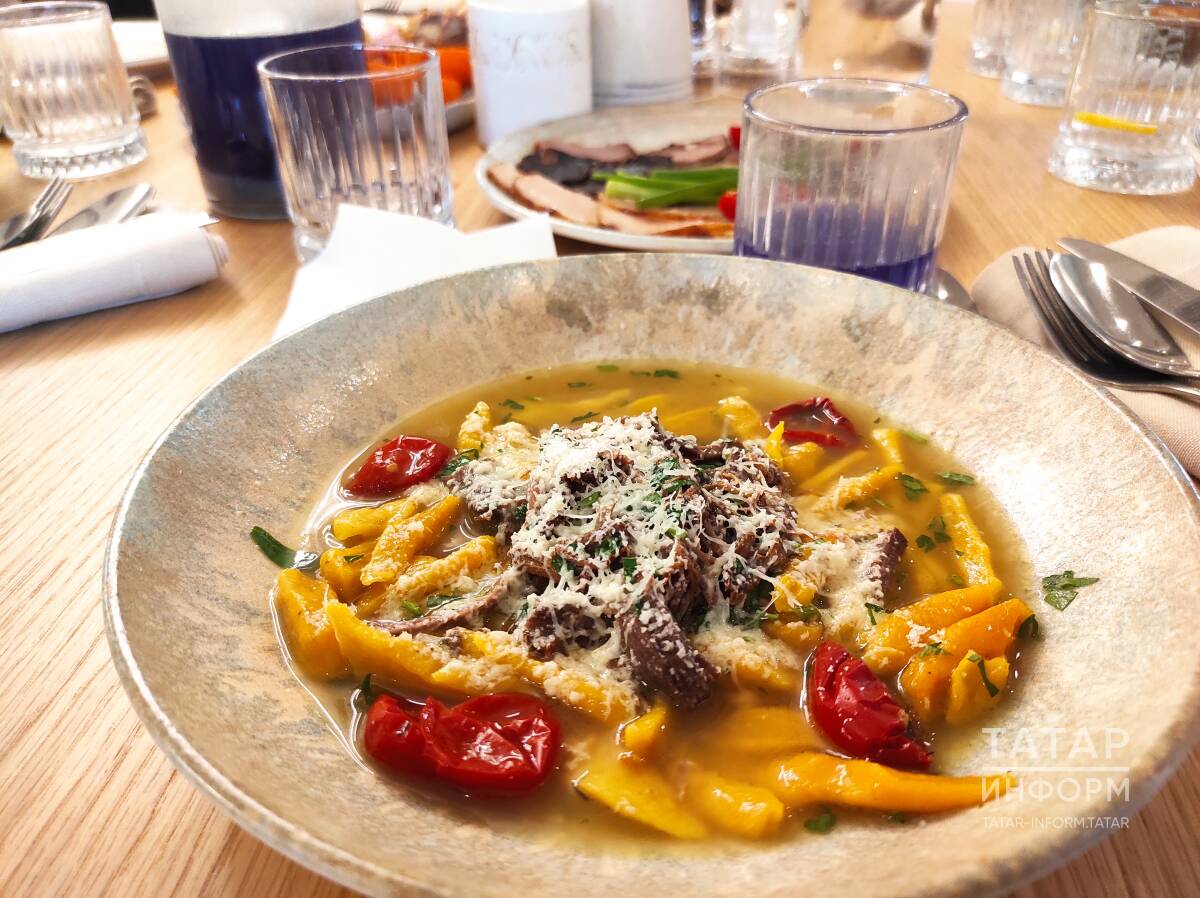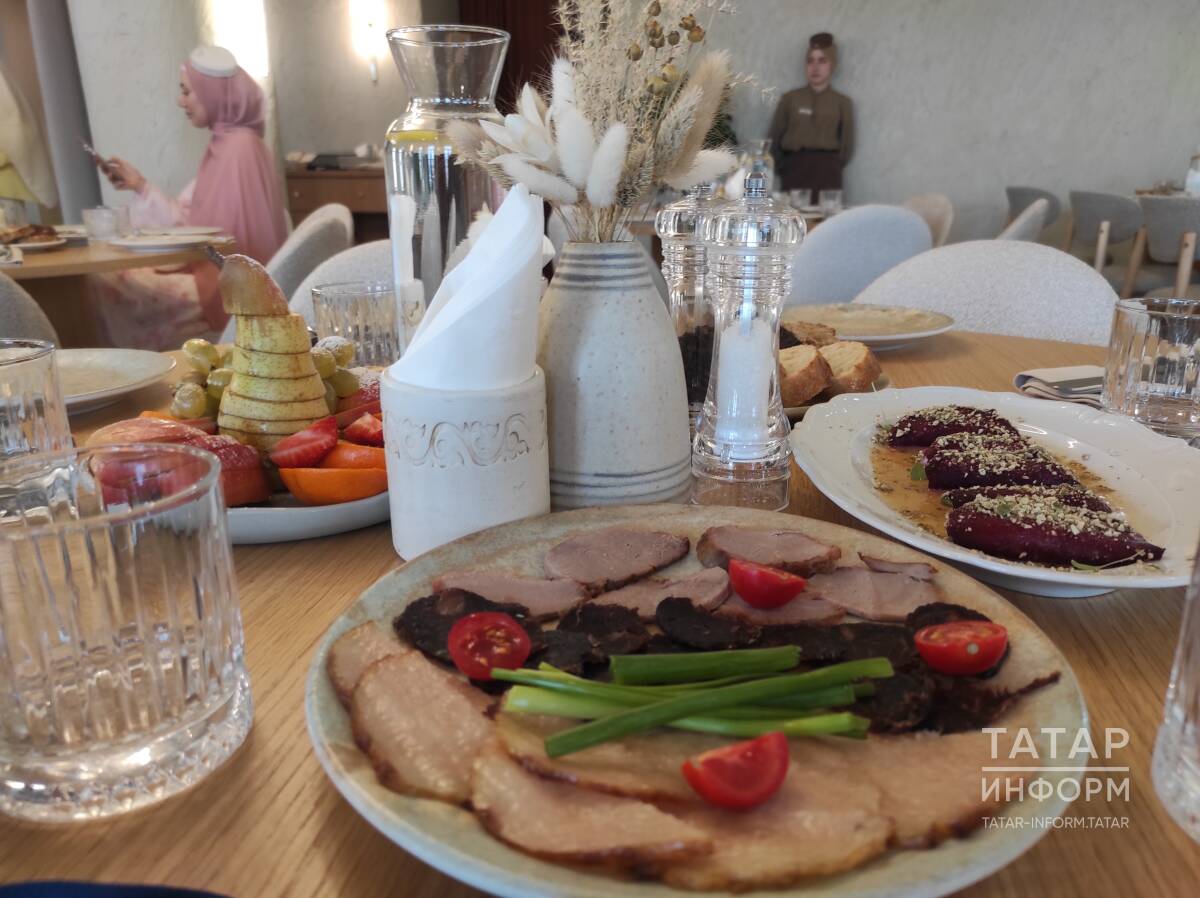Ул кунакларга 48 сәгать әзерләнә торган чөгендер һәм кабак көнбагышлары белән кыстыбый һәм башка яңа милли ашларны әзерләү процессы турында сөйләде. «Үрдәк итен, әйтик, 24 сәгать әзерлибез. Татар милли ашлары дигәндә күбесе өчпочмак, азуны күзаллый. Без кунакларыбызга күп төрле милли ашлар тәкъдим итәбез. Таныш-белешләребездән рецептлар сорашабыз һәм аны заманага яраклаштырып, үзебез яңалык кертәбез» - диде аш-су остасы.