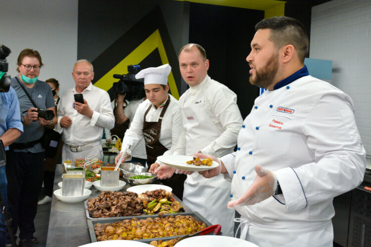 «Моннан ике ел элек Казанда милли шоу-рум ачу идеясе килде — 2021 елда без аны тормышка ашыра алдык. Технологлар әзерләү өчен институт белән берлектә студия ачтык. Биредә ике берәмлек җиһаз куелган. Алар Германиядә кулдан җыелган», — дип аңлатты Rational компаниясенең региональ вәкиле һәм шеф-повар Рамил Әхмәтов.