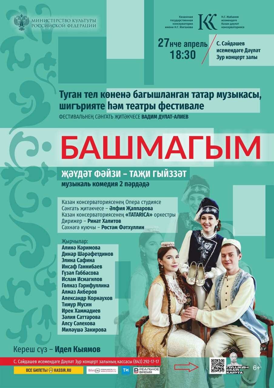 Казан консерваториясе 27 апрельдә «Башмагым» музыкаль комедиясенә чакыра. Концерт 18:30 сәгатьтә башлана. Спектакль татар телендә.