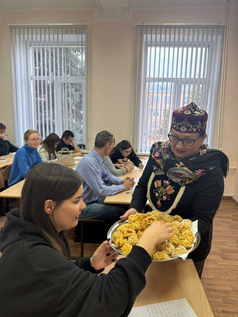 Диктант язган һәрбер студент чәкчәктән авыз итте.