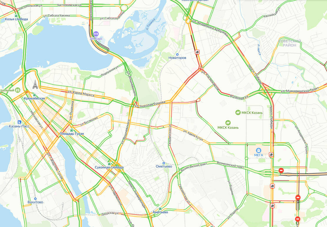 Казанда 7 баллы «бөке»ләр күзәтелә. Бу хакта «Яндекс.Карта» хәбәр итә.