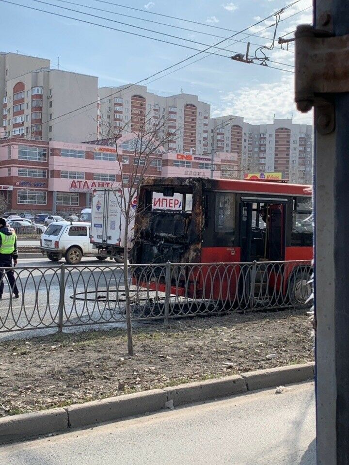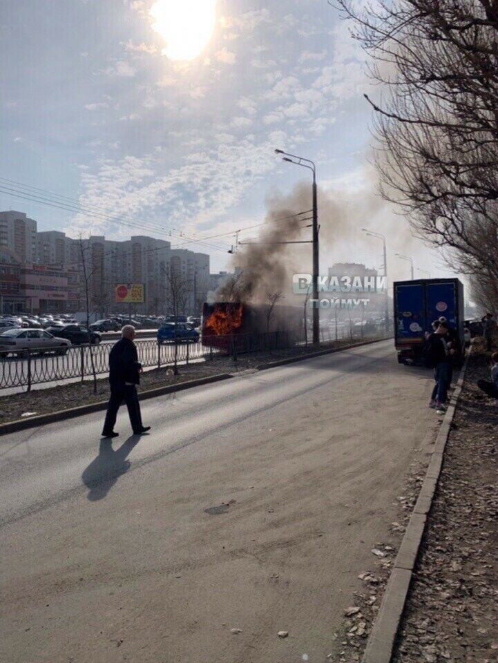 "Ямашев урамындагы 54 нче йорт каршында пассажир автобусына ут кабу турында хәбәр бүген 14.57 сәгатьтә 112 бердәм номерына килде", - диделәр ведомствода.