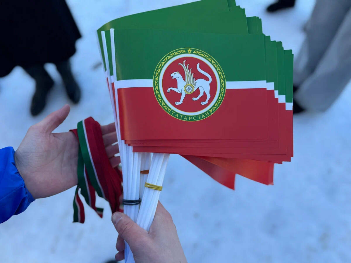 Татарстан гербы көне уңаеннан активистлар Казанда 10 мең флаг һәм тасма таратты