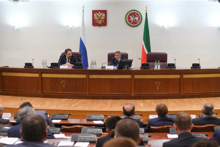 ТР Хөкүмәте Йортында бөтен муниципаль берәмлекләр белән видеоконференцэлемтә режимында киңәшмәне Татарстан Республикасы Президенты Рөстәм Миңнеханов уздырды. Киңәшмә эшендә ТР Премьер-министры Алексей Песошин катнашты.