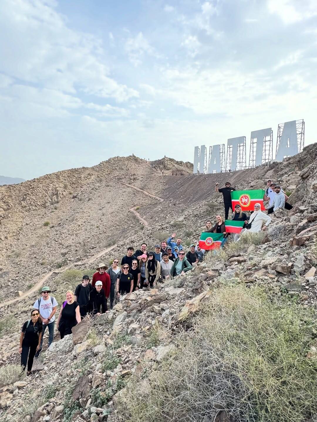 50гә якын татар Татарстан байрагы белән Берләшкән Гарәп Әмирлекләренең Хатта тауларына менде