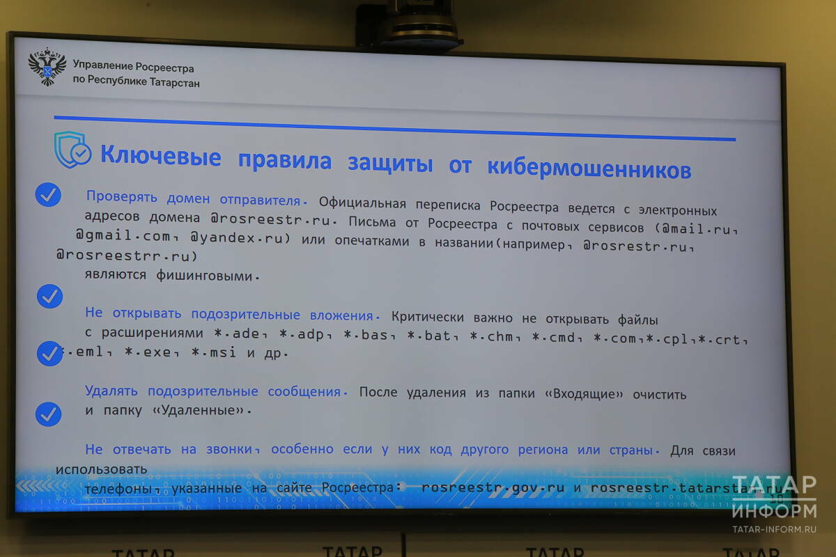 «Хәзерге вакытта мошенниклыкның иң киң таралган төре – Росреестр яки хокук саклау органнары исеменнән шалтырату һәм потенциаль корбанның исеменә күчемсез милек сату турында ышанычнамә рәсмиләштерелгән дип хәбәр итү», - дип билгеләде ТР буенча Дәүләт теркәве, кадастр һәм картография федераль хезмәте җитәкчесе урынбасары Лилия Борһанова.