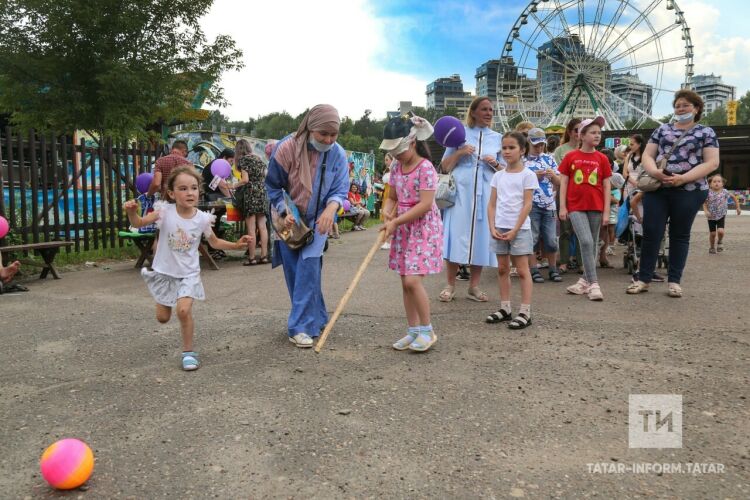 Бәйрәмгә җыелган балалар үз талантларын да күрсәтте. Ә балачак почмагында Сабантуй бәйрәме кызганнан-кызды. Нәни дусларыбыз чүлмәк ватыш, капчыкта сикерү, су ташу кебек уеннарда катнашып, бүләкләр да оттылар, ди оештыручылар.