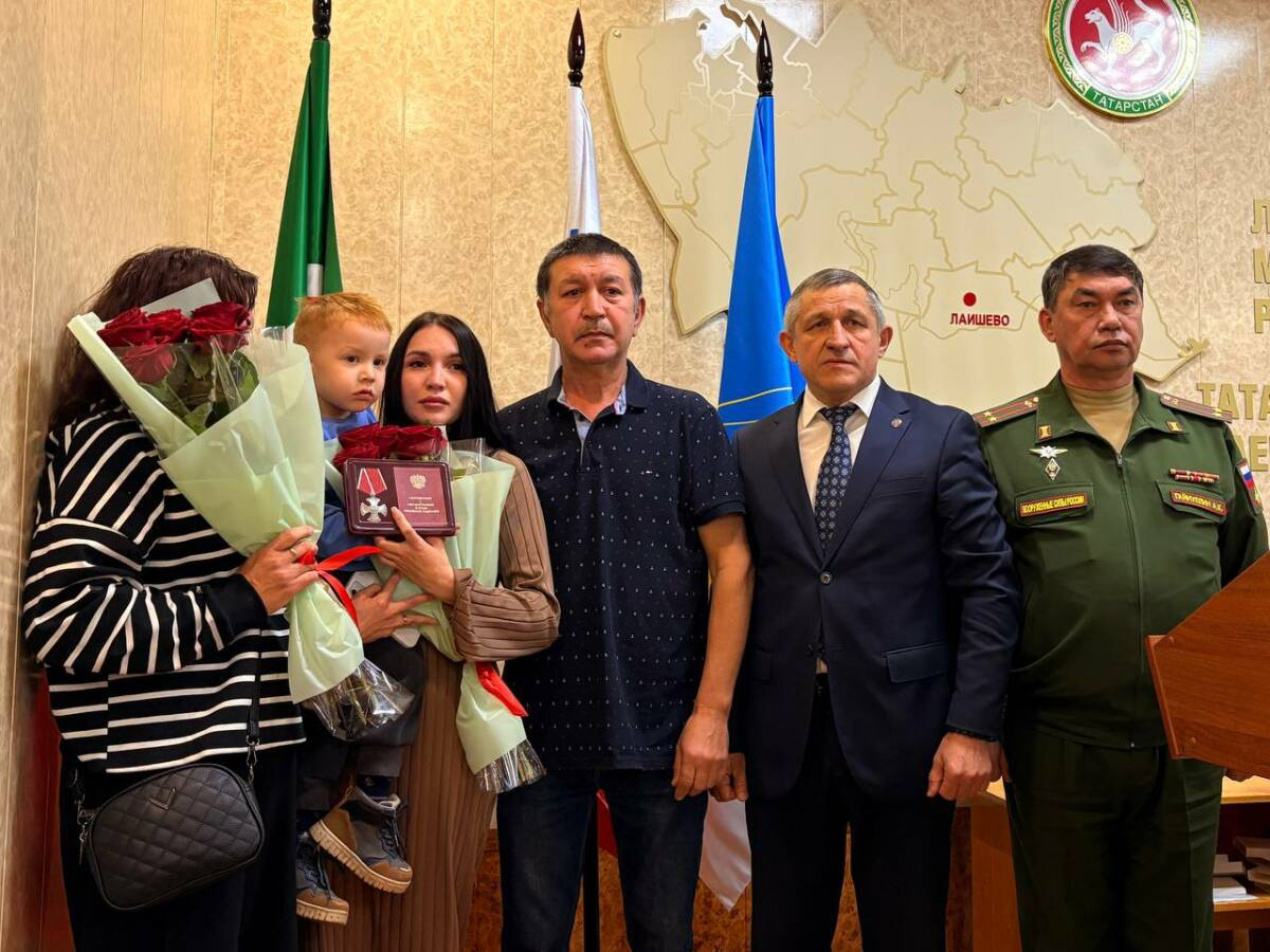 Лаеш районы башлыгы Илдус Зарипов һәм хәрби комиссар Айрат Гайнуллин махсус хәрби операция зонасында һәлак булган хәрбиләрнең туганнарына Батырлык орденнары тапшыру тантанасын уздырды. Чара район советы залында эшлекле дүшәмбе барышында узды.