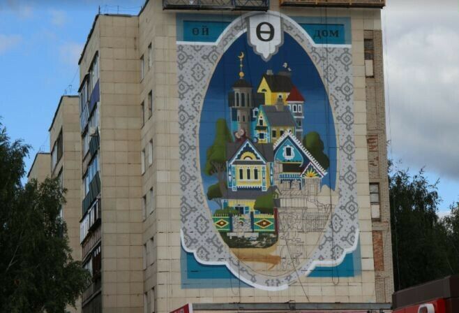 Севастопольдән килгән Алексей Кислов Төзүчеләр проспектындагы 37 нче йортның икенче ягына Өй/Дом сурәте өстендә эшли. Әйтүенчә, диварга рәсем төшергәнче ул татар өйләре турында байтак мәгълүмат алган. Һәм төрле авыл архитектураларын бер әкияти йортка берләштергән.
