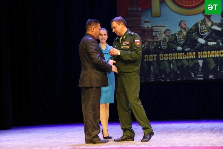 Генерал-майор Сергей Погодин егетләргә армия хезмәтендә хәерле юл теләп, киңәшләрен җиткерде. Ул хәрби-патриотик эшне югарылыкта алып барганы өчен район башлыгы Айрат Хәйруллинга хәрби комиссариатларга 100 ел уңаеннан чыгарылган медаль тапшырды.