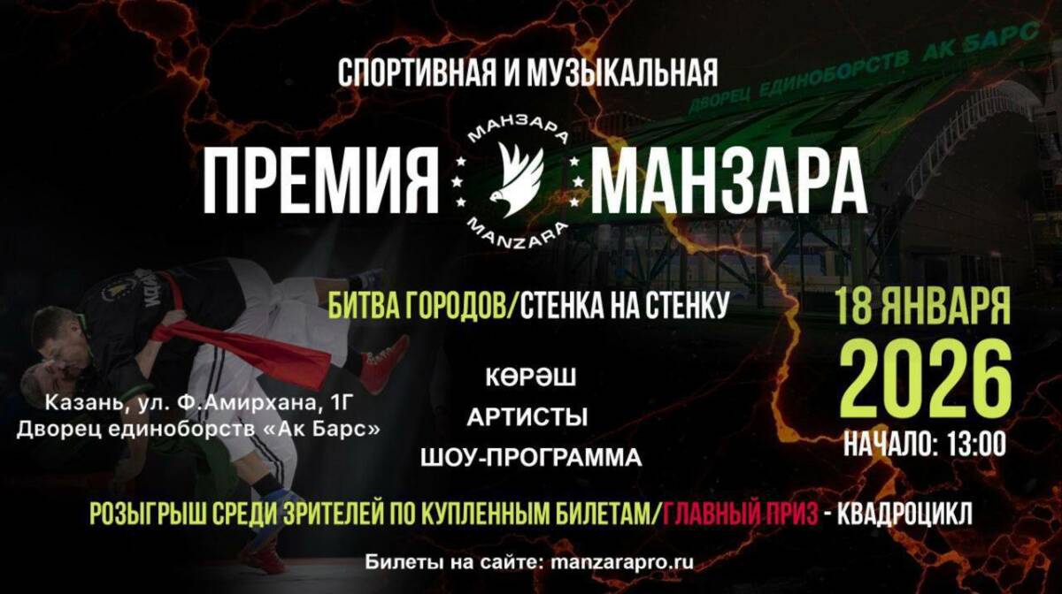 18 гыйнварда Казанның «Ак Барс» Көрәш сараенда чираттагы «Манзара» спорт-музыкаль премиясе узачак. Тантана кысаларында тамашачыларны мавыктыргыч көрәш бәйгесе һәм зур шоу-программа көтә. Ярышлар «стенка на стенку» форматында һәм шәхси зачетта узачак. «Стенка на стенку» форматында ике команда – Казанның «Зилант» командасы һәм Чаллы шәһәре җыелма командасы көч сынашачак.