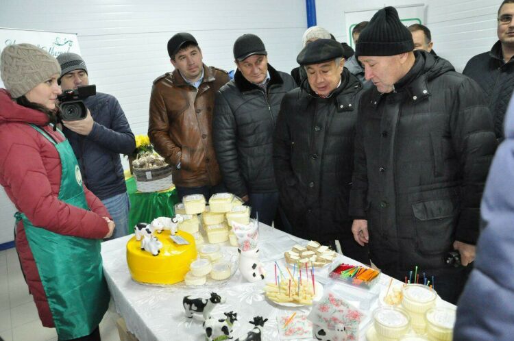 Марат Әхмәтов визитын дәвам итеп, Миңгәрдә төзелгән көнбагыш мае сыгу заводында булды. “Миңгәрагро” җәмгыятенең генераль директоры Денис Алексеев сөйләвенчә, биредә калдыксыз технологиягә нигез салынган. Өч сменада тәүлегенә 60 тонна чимал эшкәртеләчәк цехта рафинадланмаган көнбагыш мае һәм терлекләргә ашатыла торган түб җитештереләчәк. Кабагы исә цехны җылыту өчен кулланылачак. Майны һәм аның түбен ай саен 50-60 тонна эшләү планлаштырыла. “Миңгәрагро” җәмгыяте 25 кешегә эш урыны бирә. Киләсе елга җитештерүне тагын да киңәйтү – чистартылган көнбагыш мае чыгару күздә тотыла. Өстәмә эш урыннары да булдырылачак. Әмма моның өчен тагын 40-45 миллион сум акча кирәк. Д.Алексеев министр белән әңгәмә вакытында әлеге проектны тормышка ашыру өчен субсидия алуга кагылышлы сорауны биреп өлгерде. Марат Әхмәтов әлеге мәсьәләне уңай хәл итү юллары эзләнәчәген белдерде. Министр шулай ук Көек авылында ат ите эшкәртү цехы эшчәнлеге белән дә кызыксынды. Цехның эшчәнлеге белән “Көек” авыл хуҗалыгы кооперативы җитәкчесе Нияз Хурамшин таныштырды. Делегацияне “Каймак” сөт эшкәртү комбинатында да җылы каршыладылар. Комбинат көнгә бер тонна сөт эшкәртә, киләчәктә 6 тоннага кадәр җиткерү планы белән яшиләр. Бүгенге көндә сөт, каймак, эремчек, корт җитештерәләр. “Киләчәкне күздә тотып, сыр ясау цехы булдырып киләбез”, – ди комбинат җитәкчесе Айрат Мостафин. Марат Әхмәтов биредә районда он, казылык, прәннек ясау, кош ите, сөт, шул исәптән кәҗә сөте продуктлары җитештерүчеләр, яшелчә үстерүчеләр һәм умарта тотучылар белән аралашты. Алар җитештергән продуктлар белән танышты. –Күп әйберне сездән өйрәнәбез, бүген дә күп яңалыклар күрдек. Тулы куәтенә эшләүче объектларда булдык. Районыгызда кече эшмәкәрлек тулы куәтенә эшләвен күрдек. Һәркем үзенә юл салырга тырышкан һәм тапкан. Кайсы белән генә аралашсаң да, һәркайсының киләчәккә үз планнары бар. Кече эшмәкәрләрнең бер генә юнәлештә түгел, төрле тармаклар буенча эшләве сөендерде. Бүген күргәннәрдән мин бик канәгать, – дип белдерде министр визиты ахырында.