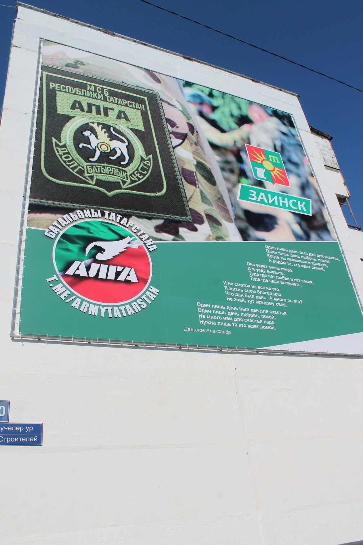 Махсус хәрби операциядә катнашучы Зәй егете сөйгәненә багышлап шигырьләр язган. Батыр егетнең шигырьләре Зәйдә Төзүчеләр урамындагы 18нче һәм 20нче йортларның фасадларын бизи. Авторның шигырьләре патриотик төстә бизәлеп, зур баннерларда урнаштырылган, алар әллә кайдан күренеп тора. Бу хакта «Зәй яңалыклары» яза.
