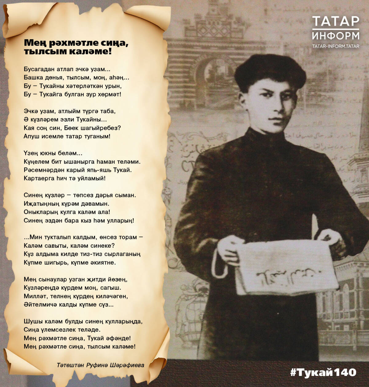 «Татар-информ» мәгълүмат агентлыгы «Ядкярләрдә Тукай рухы» әдәби конкурсында җиңү яулаган катнашучыларның эшләрен тәкъдим итә. Әдәби бәйге Татарстан Республикасы Милли музее һәм Габдулла Тукай әдәби музее тарафыннан оештырыла. Әлеге эшләр беренче тапкыр матбугатта тәкъдим ителә.