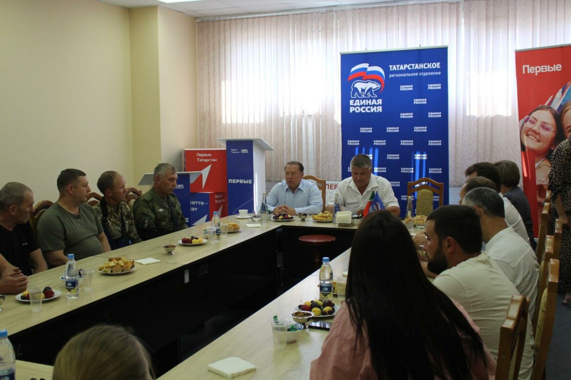 РФ Дәүләт Думасы депутаты Айдар Метшин һәм Татарстанның Яңа Чишмә районы башлыгы Вячеслав Козлов хәрби хезмәткәрләр һәм махсус хәрби операция катнашучыларына ярдәм итүче волонтерлар белән очрашты.