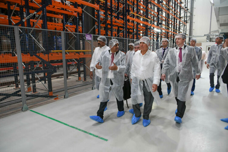Шуннан соң Татарстан Президенты кластердагы иң эре предприятиедә - «Ауробиндо» заводында булган. Рөстәм Миңнеханов логистика үзәген, дару җитештерү линиясен һәм башкаларны караган.