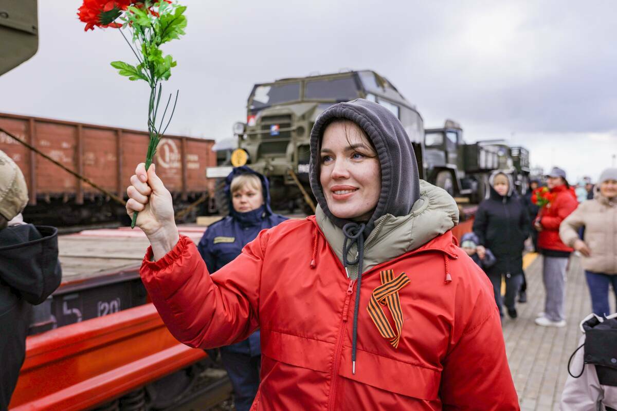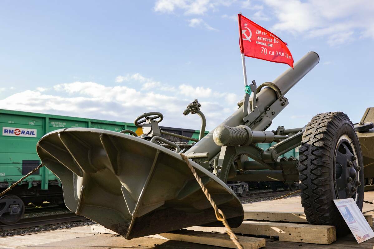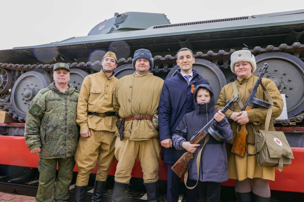 6:35 сәгатьтә Бөек Ватан сугышы чорындагы хәрби техника төялгән 12 платформадан торган «Лебедянка» серияле паровоз «Әлмәт» станциясендә килеп туктады.