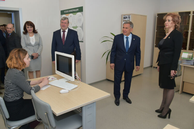Рөстәм Миңнеханов биш катлы бинаны карады, анда аңа уку залын, анда җәелдерелгән күргәзмәне һәм башка архив бүлмәләрен күрсәттеләр. Кунаклар шулай ук архив белгечләре бүлмәләрен дә карады.