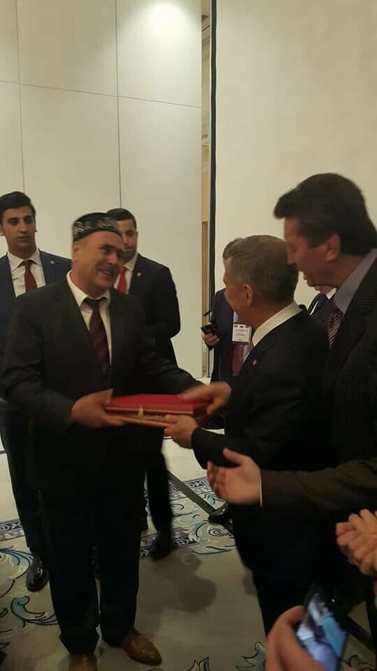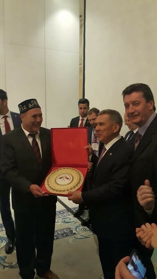 Очрашу ахырында Искешәһәрдәге “Казан татарлары мәдәният һәм үзара ярдәмләшү” җәмгыяте җитәкчеләре Рөстәм Миңнехановка истәлек бүләге тапшырдылар.