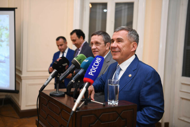 «Бөек рус дәүләт һәм сәяси эшлеклесе, легендар шәхес – Евгений Максимович Примаковка бюст ачуда катнашабыз. Бу безнең илләр арасында дипломатик мөнәсәбәтләр урнашуга 75 ел тулган елда узу – күркәм күренеш. Чит илләрдә беренче бюст ачу нәкъ менә Мисырда уза. Шунысын да билгеләп үтәсем килә: Евгений Максимович һәм Татарстанның беренче Президенты Минтимер Шәрип улы – «Россия – ислам дөньясы» стратегик караш төркемен төзүдә башлап йөрүчеләр булдылар», - диде Рөстәм Миңнеханов.