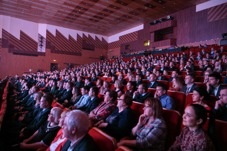 Рөстәм Миңнеханов үз чыгышын Россия Президенты Владимир Путинның котлау телеграммасын укыудан башлады. Ил башлыгының “КАМАЗ-Мастер” командасының Россия автомобиль сәнәгате үсешенә саллы өлеш кертүе турындагы котлау сүзләрен зал алкышлар белән кабул итте.
