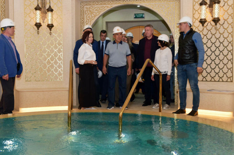 Рөстәм Миңнеханов мунча комплексын, төп фойе һәм номер фондын карады. Моннан тыш Президентка кунакханәнең яр буе линиясен үстерү проектын тәкъдим иттеләр. Анда амфитеатр рәвешендә сәхнә, ял зонасы һәм бассейн булачак.