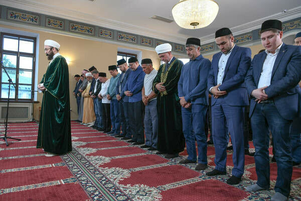 Хөтбәдән соң мәчеттә мөселманнар гает намазы укыды.