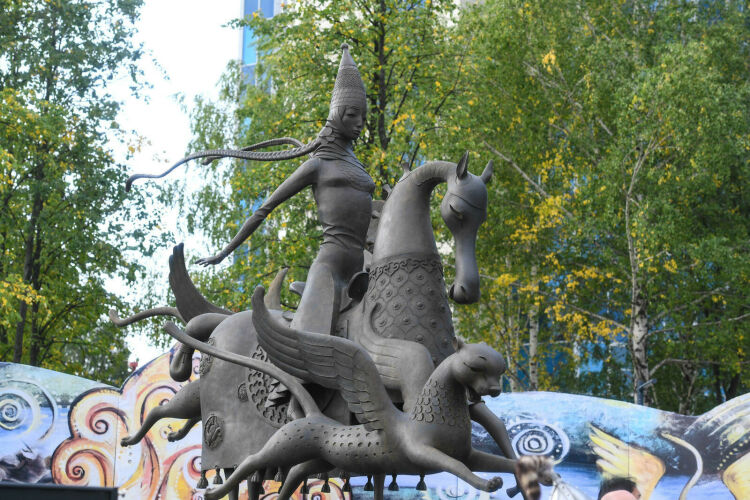 - «Татнефть» җәмгыятенең төп офисы каршына урнаштырылган скульптурада татар халык риваятьләрендә искә алынган хәрби хатын-кыз Каракүз сурәтләнгән. 7 метр биеклектәге сынны архитектор Даши Намдаков ясаган.