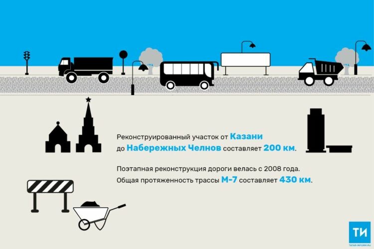 «Башкарылган эшләр М7 «Волга» автотрассасының үткәрү мөмкинлеген һәм юл хәрәкәтендә катнашучыларның иминлеген арттырачак», - дип искәрттеләр министрлыкның матбугат хезмәтендә.