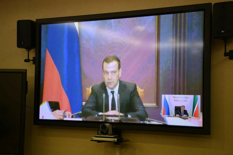 Утырышны илнең барлык төбәкләре белән видеоконференция элемтәсе режимында Россия Хөкүмәте Рәисе Дмитрий Медведев уздырды.