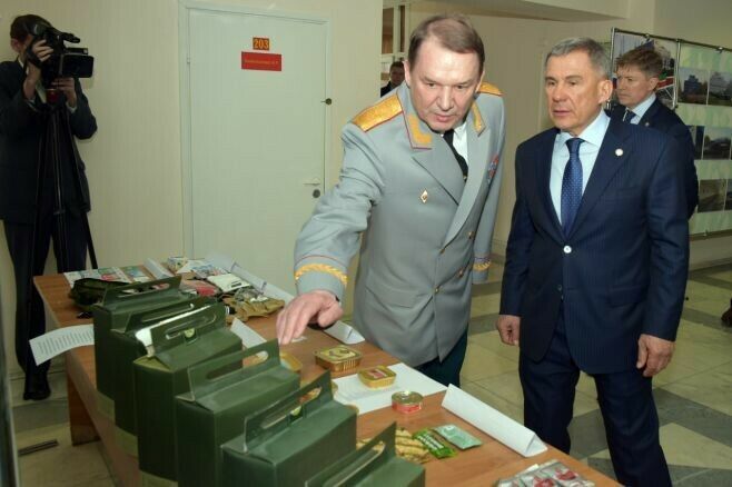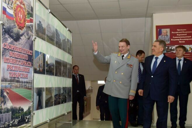 Татарстан лидеры ТР хәрби комиссары Сергей Погодинның докладын кабул иткәч, ике күргәзмә белән танышты.