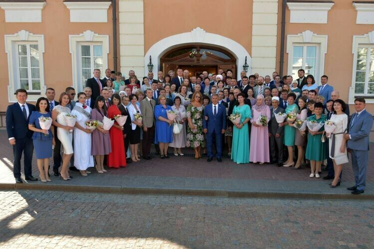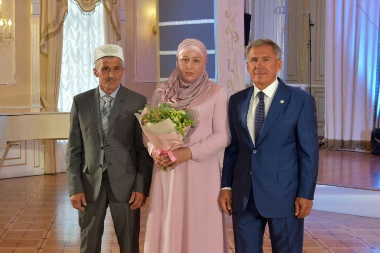 Шуннан соң Рөстәм Миңнеханов Татарстанның күпбалалы гаиләләрен – Биектау районыннан Рәисә Ниязованы, Алабуга районыннан Наталья Сашинаны һәм Азнакайдан Зөлфия Калистратованы «Ана даны» медале белән бүләкләде.