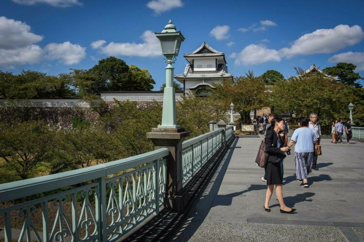 Шуннан соң Рөстәм Миңнеханов Канадзава замогында булды. XVIII гасыр замогында 1989 елга кадәр университет урнашкан булган. Икенче бөтендөнья сугышы вакытында замокта Япония император армиясенең штаб-квартирасы булган. Бүген замок җәмәгатьчелек өчен ачык.