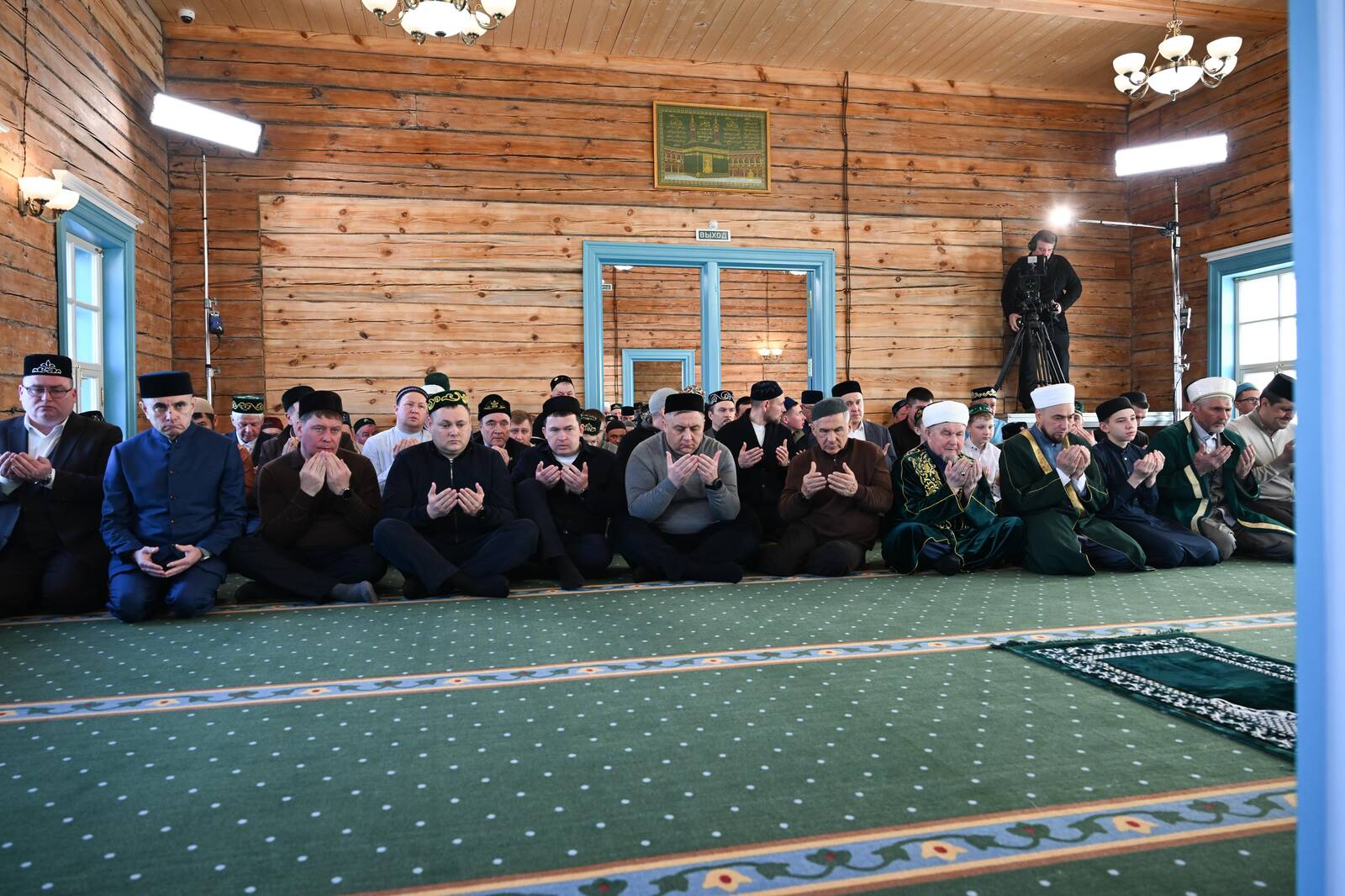 Бәйрәм чарасы җыйнак кына мохиттә узды. Мәчетнең икенче катындагы өч өлешле киң намаз бүлмәсенә авыл ир-атлары һәм килгән кунаклар җыелды. Алгы сафларда Рөстәм Миңнеханов һәм республика казые Җәлил хәзрәт Фазлыев урын алды. Республика мөэмин-мөселманнарына бәйрәм вәгазен традицион рәвештә Татарстан мөселманнары Диния нәзарәте рәисе Камил хәзрәт Сәмигуллин укыды. Ул мөнбәргә ап-ак бәйрәм киеменнән күтәрелде.