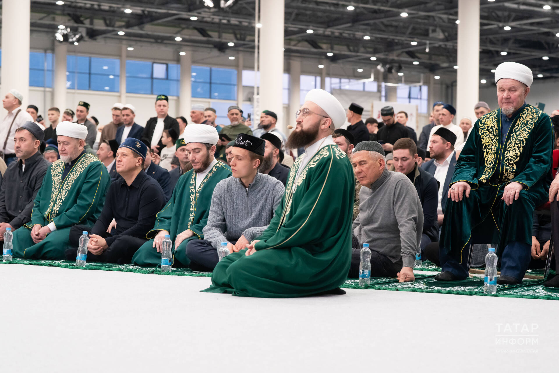 Керүгә, һәркем өстәлләргә куелган бер шешә су, аяк киеме өчен төреп куелган пакетларны алып, гардеробка юнәлде. Әйтергә кирәк, ифтарның рәсми өлеше ачылганчы, фойе өлешендә йөргән кунаклар өчен тавыш көчәйткечләр аша чишенү, тәһарәт урыннары, намаз уку урыннары кайда икәнлеге, намаз уку залына аяк киемен салып керү кирәклеге һәм башка кагыйдәләр һәрвакыт искәртелеп торды.