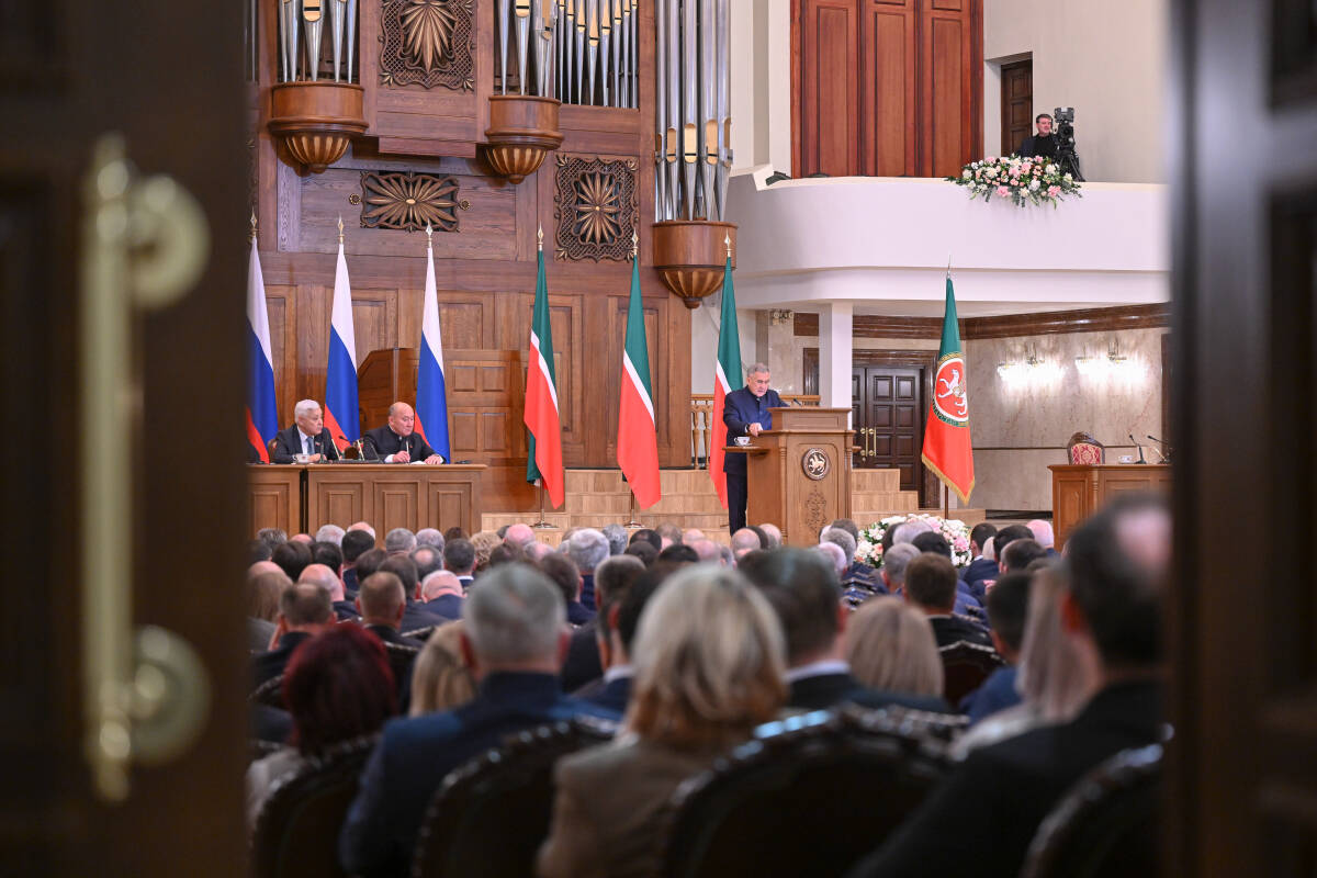 «Татарстан алдагы үсешен дәвам итә. Күп кенә социаль-икътисади күрсәткечләр буенча республика илдә алдынгылар сафында тора. Республика казанышлары – күп милләтле халкыбызның бердәм хезмәте нәтиҗәсе», –дип Татарстан Республикасы Рәисе Рөстәм Миңнеханов ТР Дәүләт Советына 2026 елга юлламасы белән чыгышын татар телендә башлады.