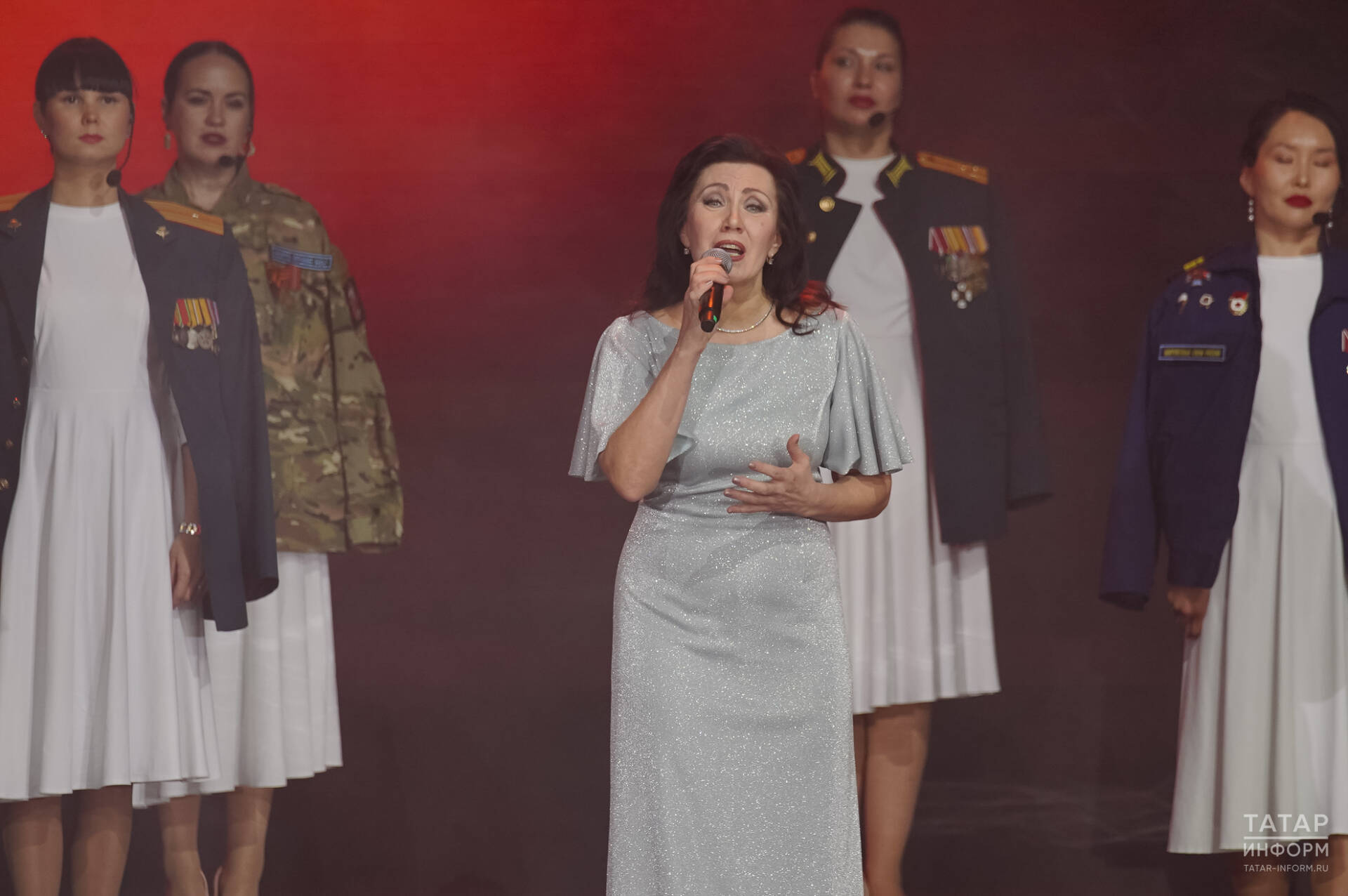 Концертта Бөек Ватан сугышы чоры җырлары яңгырады. Татар дәүләт җыр һәм бию ансамбле, Филүс Каһиров, Винера Ганиева, Алинә Шәрипҗанова, Татарстаның яшьләр симфоник оркестры, Казанның балалар музыка мәктәпләре укучыларының катнаш хоры катнашты. Ә хәрби операциядә катнашучыларның тормыш иптәшләре ансамбле чыгышы вакытында күпләрнең күзләренә яшь тулды.