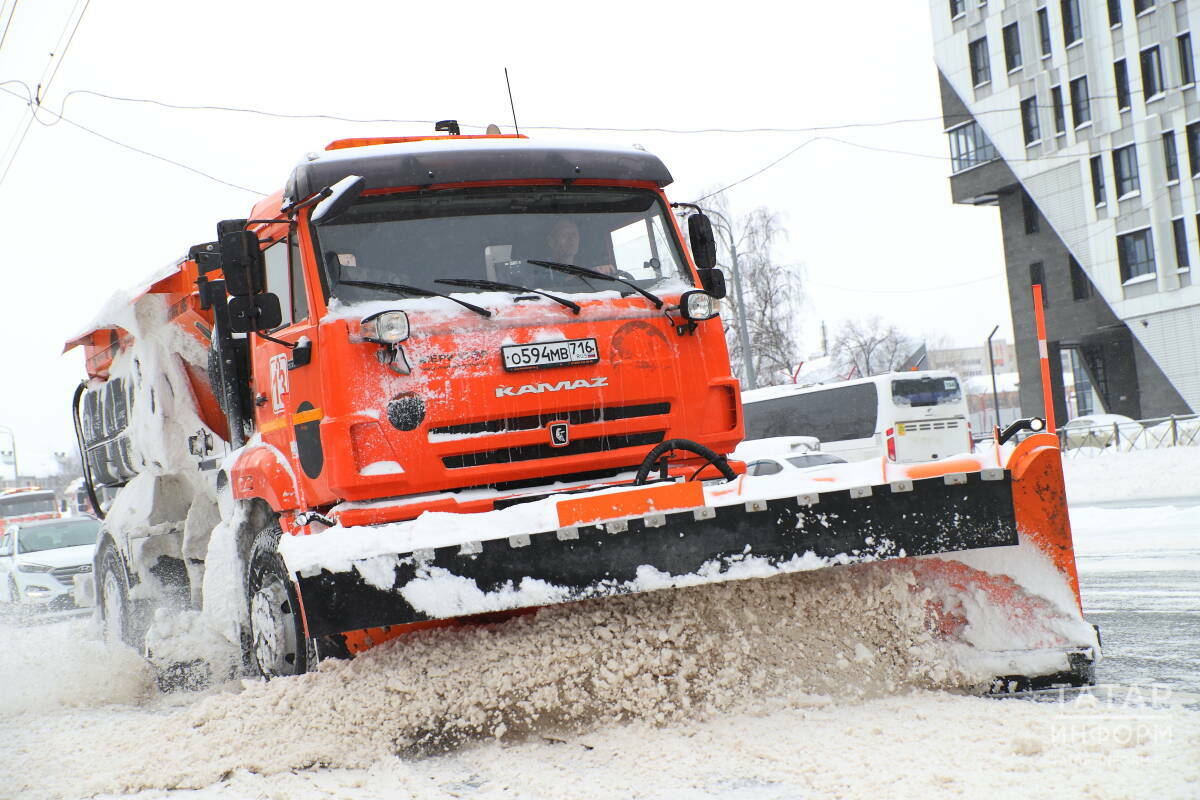 Бүген көндез Казан урамнарын кардан чистартуда 614 берәмлек техника, шул исәптән 69 катнаш юл машинасы, 88 трактор щеткасы һәм 574 юл эшчесе катнаша.