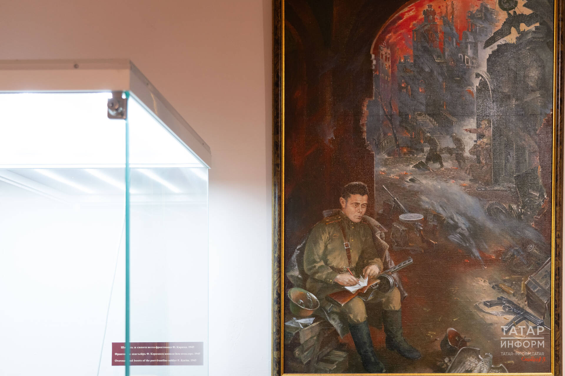 Күргәзмәдә Фатих Кәримнең иптәшләре җибәргән посылка тышлыгын-капчыкны күрергә мөмкин. 1945 елның 19 февралендә Кенигсберг (хәзерге Калининград шәһәре) янында шагыйрь һәлак булганнан соң, хезмәттәшләре аның шинелен, итекләрен, шигырьләр язылган блокнотларын, хатыны һәм балаларыннан килгән хатларын нәкъ менә шушы посылкага салып җибәрәләр. Кәримнең полкташлары аның үз туган ягында танылган шагыйрь булуын белгән. Фатих Кәримнең хатыны Кадрия Ишукова посылканы иренең һәлак булуы турындагы хәбәрдән алдарак ала һәм аның инде исән түгеллеген шунда ук аңлый.