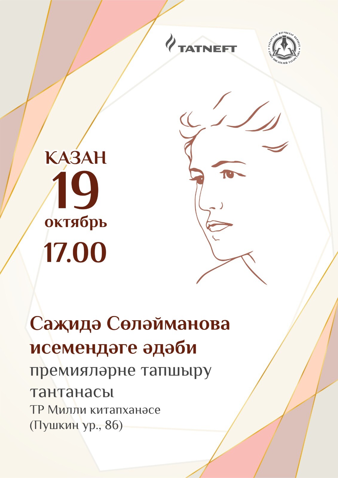 Саҗидә Сөләйманова исемендәге Әдәби премияләр лауреатларын бүләкләү, шулай ук С.Сөләйманова исемендәге стипендияләр сертификатларын тапшыру тантанасы быел беренче тапкыр Казан шәһәрендә уза. Тантана иртәгә, 19 октябрьдә, Татарстан Республикасы Милли китапханәсендә була. 17.00 сәгатьтә башлана.