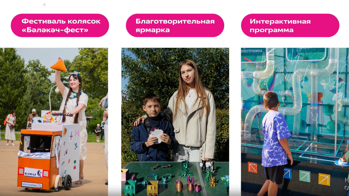 2 майда коляскалар парады уза, анда катнашучылар креатив бизәлештә ярышачак. Моннан тыш, фестиваль кысаларында хәйрия ярминкәсе дә уза. Җыелган акчалар «Игелекле Казан» проектына юнәлдереләчәк.