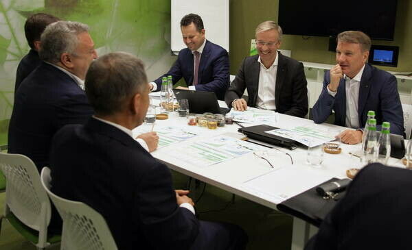 Аннан соң Рөстәм Миңнеханов «Сбербанк»ның идарә рәисе һәм президенты Герман Греф белән очрашты. Ике як киләчәк хезмәттәшлек турында фикер алышты.