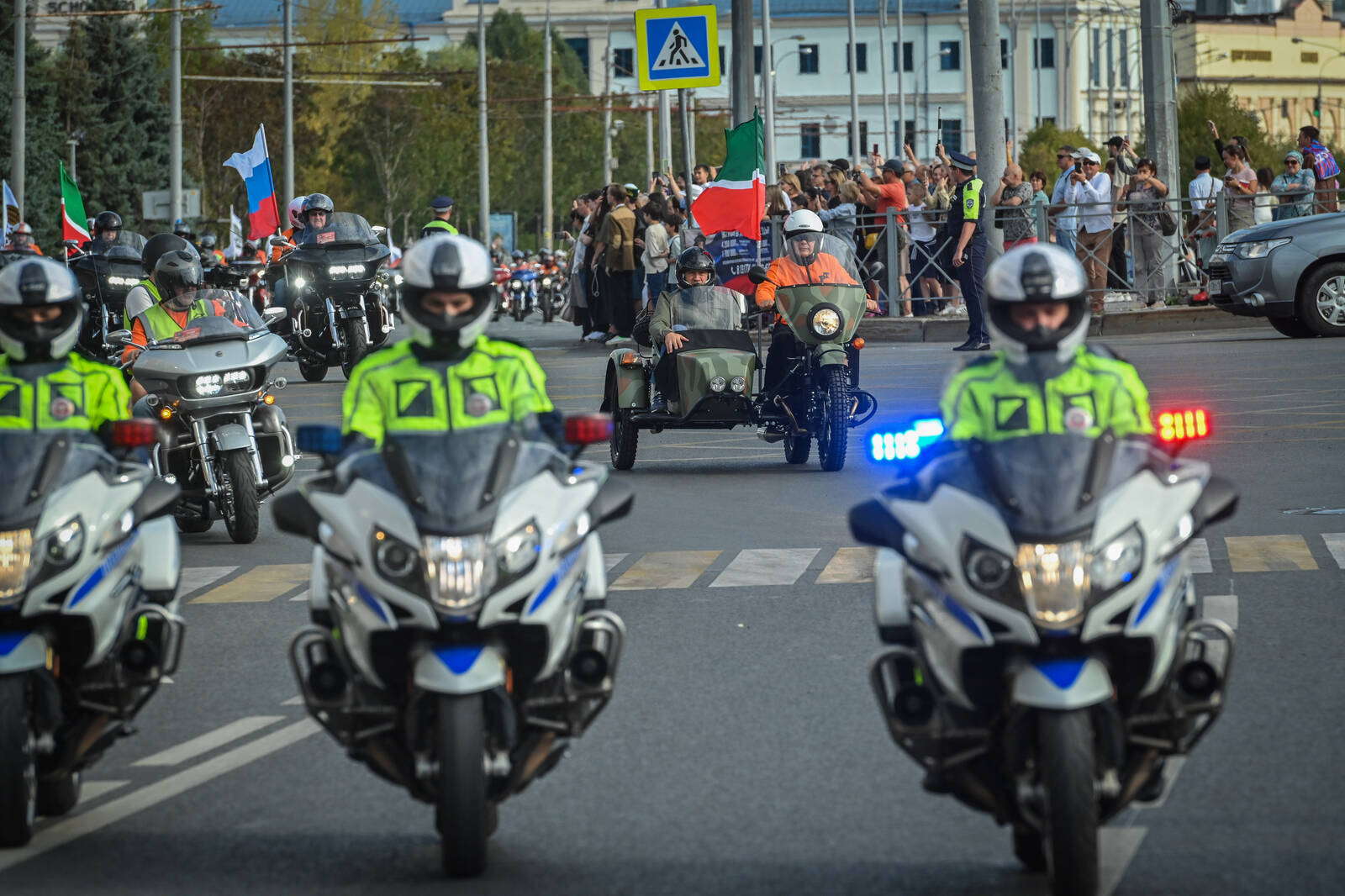 Мотоциклчылар 1 нче Май мәйданында колоннага тезелделәр. Аларга Рөстәм Миңнеханов кушылгач, байкерлар колоннасы «Казан» гаилә үзәгенә юнәлде.